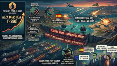 Economía e inflación. Las empresas y los consumidores europeos ya sienten el efecto: alzas de coste en transporte, materia prima y electricidad. Según Reuters, la subida del petróleo y gas presiona al alza la inflación global, lo que a su vez podría frenar el crecimiento económico y aumentar la factura comercial de los países netamente importadores de energía. Además, el temor a una guerra de mayor alcance puede alterar el comercio: por ejemplo, Trump anunció que la Marina estadounidense escoltará petroleros para asegurar el flujo de energía, lo que implica militarización de rutas comerciales. España, miembro de la OTAN, refuerza sus contingentes en misiones en Oriente Medio y Líbano ante posibles ataques de represalia.